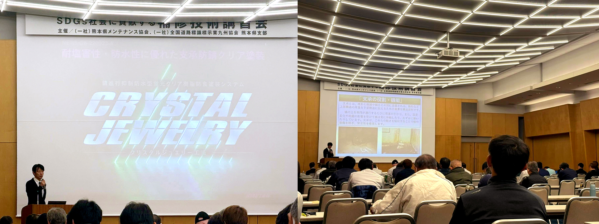 11/21(金)に(一社)熊本県メンテナンス協会、(一社)全国道路標識標示業九州協会熊本県支部による主催技術講習会「SDGs社会に貢献する補修技術講習会」でクリスタルジュエリー工法の技術講習会をいたしました。